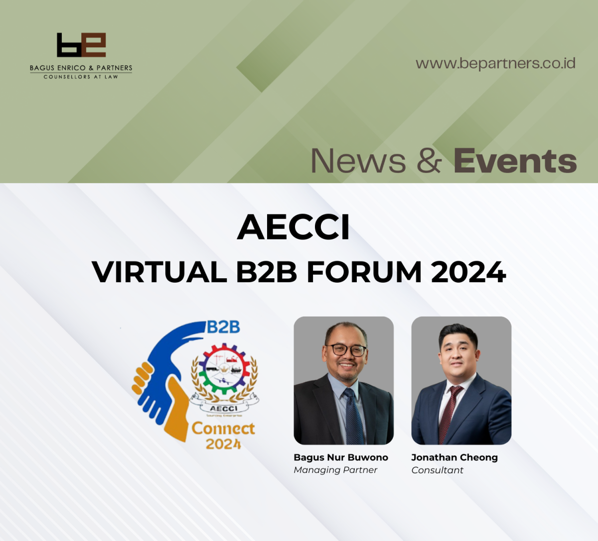 Bagus Enrico & Partners Counsellors at Law is proud to have attended the Virtual B2B Forum hosted by AECCI Asian Exporters Chamber of Commerce as the sole Indonesian representative.