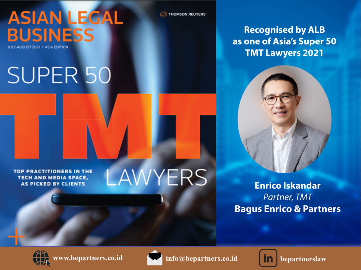 We are excited to announce that one of our founding partners, Enrico Iskandar, has been named as one of the Asia's Super 50 TMT Lawyers by Asian Legal Business (ALB) as picked by clients in the tech and media sector.