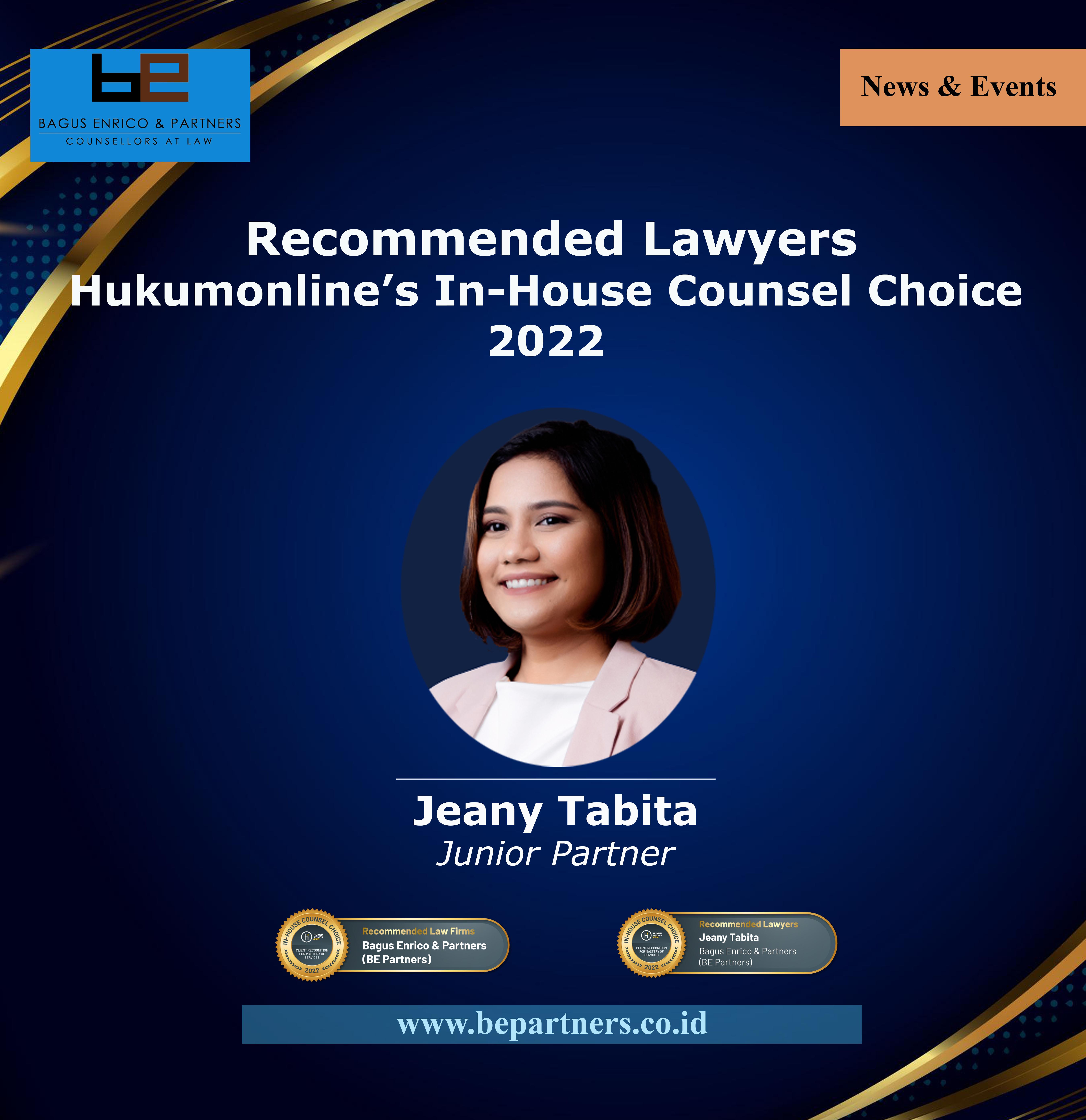 We are proud to announce the inclusion of our only female partner as one of Hukumonline.com In House Counsel’s Recommended Lawyers. And Bagus Enrico & Partners Counsellors at Law has been included as Hukumonline.com’s In-House Counsel Choice of recommended law firms in Indonesia.