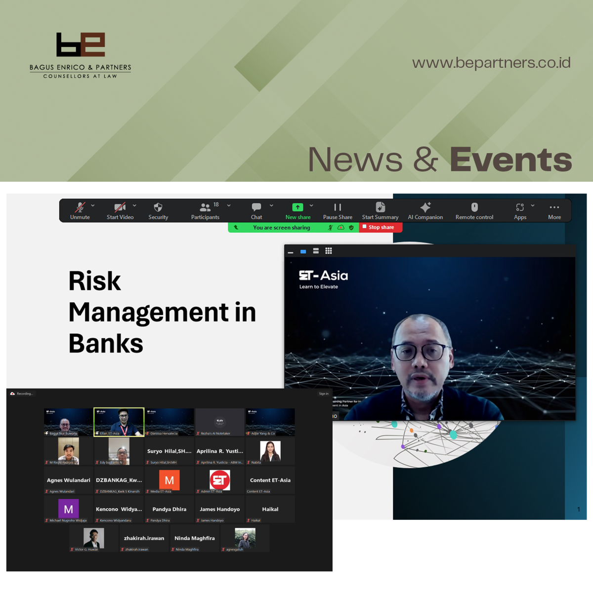 Building on his expertise, our Managing Partner, Bagus SD Nur Buwono, returned as a speaker at the ET-Asia Company Law Advance Class - Banking & Finance on May 27th, 2024. He shared his insights on Risk Management in Banks.