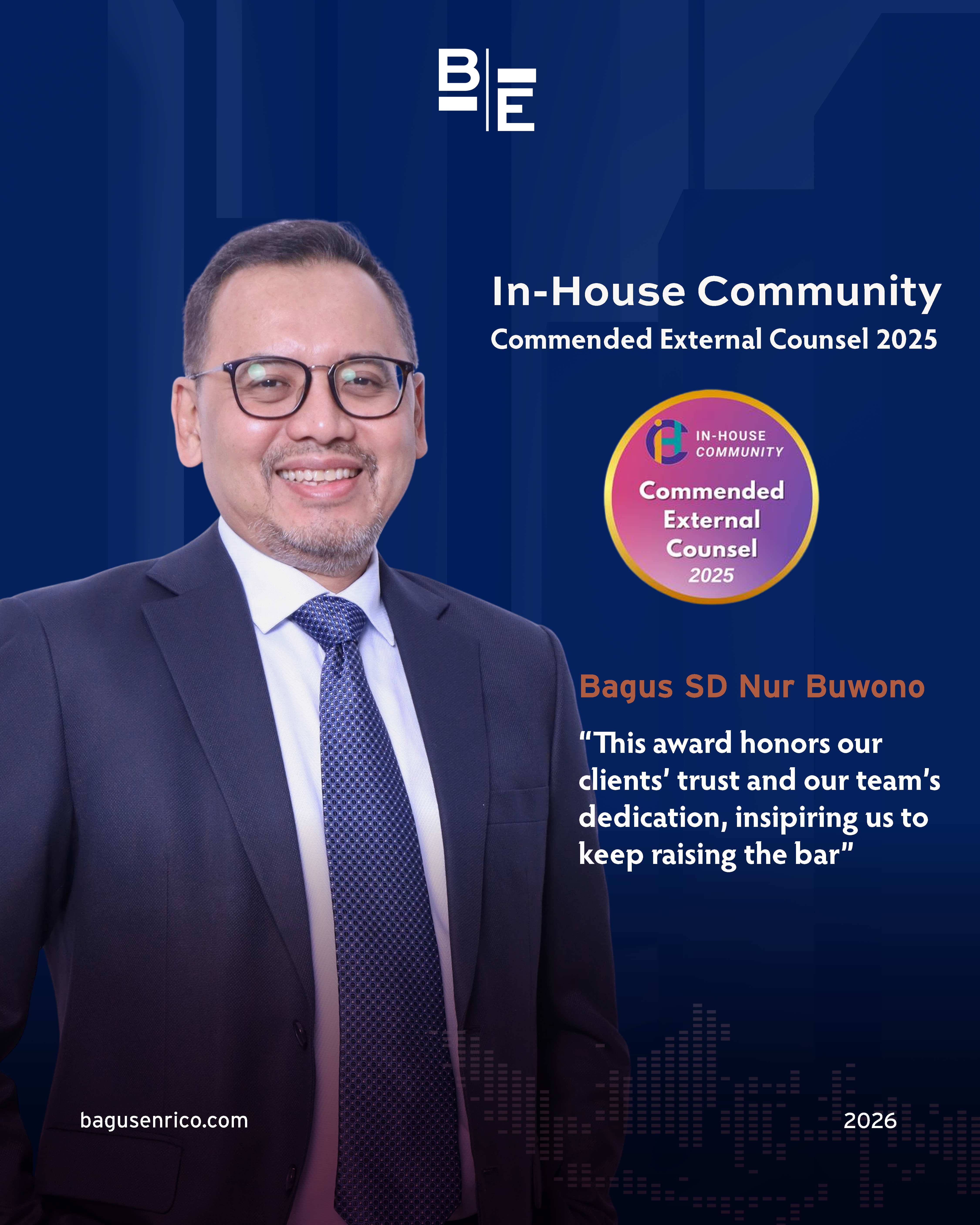 Bagus S D Nur Buwono’s acknowledgment as a Commended External Counsel in the In-House Community – inhousecommunity.com Counsel of the Year Awards 2025 shines a light on the values that drive us forward.