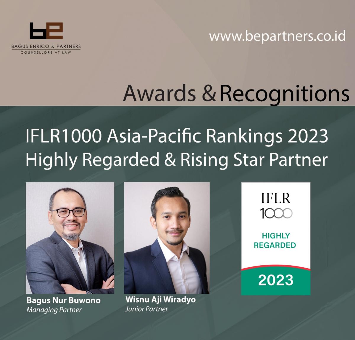 It is with great honour to announce that our Bagus Nur Buwono and Wisnu Aji Wiradyo had recently been nominated and awarded two rankings in IFLR1000's financial and corporate law firms and lawyers.