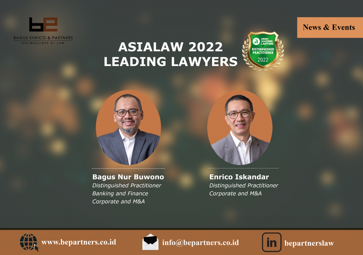 We are pleased to share that our founding partners have been ranked as one of Asialaw’s Distinguished Practitioners; Bagus S D Nur Buwono for Banking and Finance, and Corporate and M&A and Enrico Iskandar for Corporate and M&A.
