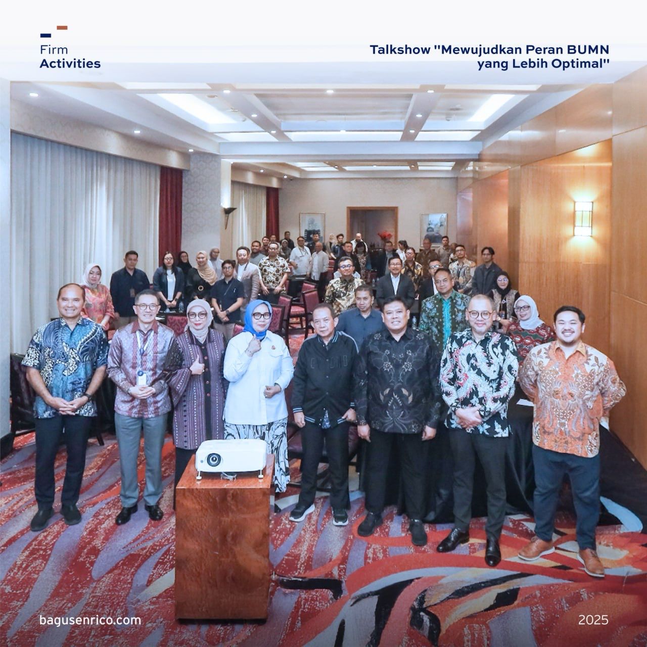 On March 18, 2025, our firm held a talk show titled “Fenomena Kerugian BUMN Pasca Revisi UU BUMN: Mewujudkan Peran BUMN yang Lebih Optimal” in collaboration with Tirtamas Mandiri Indonesia.